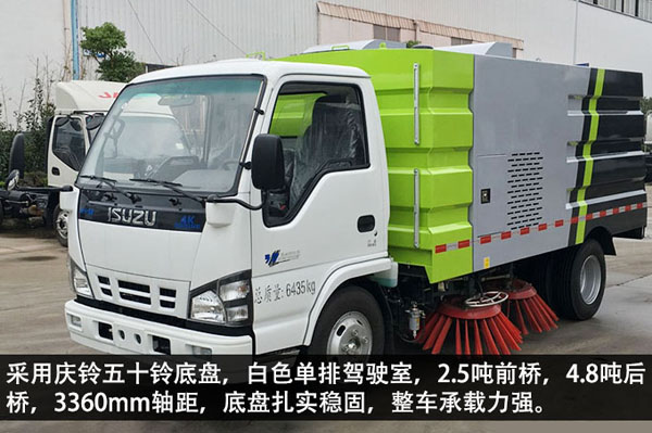 五十鈴掃路車底盤采用慶鈴五十鈴底盤,白色單排駕駛室,內(nèi)飾設(shè)計(jì)簡潔大方,配置齊全,2.5噸前橋,4.8噸后橋,3360mm軸距,底盤扎實(shí)穩(wěn)固,整車承載力強(qiáng)。