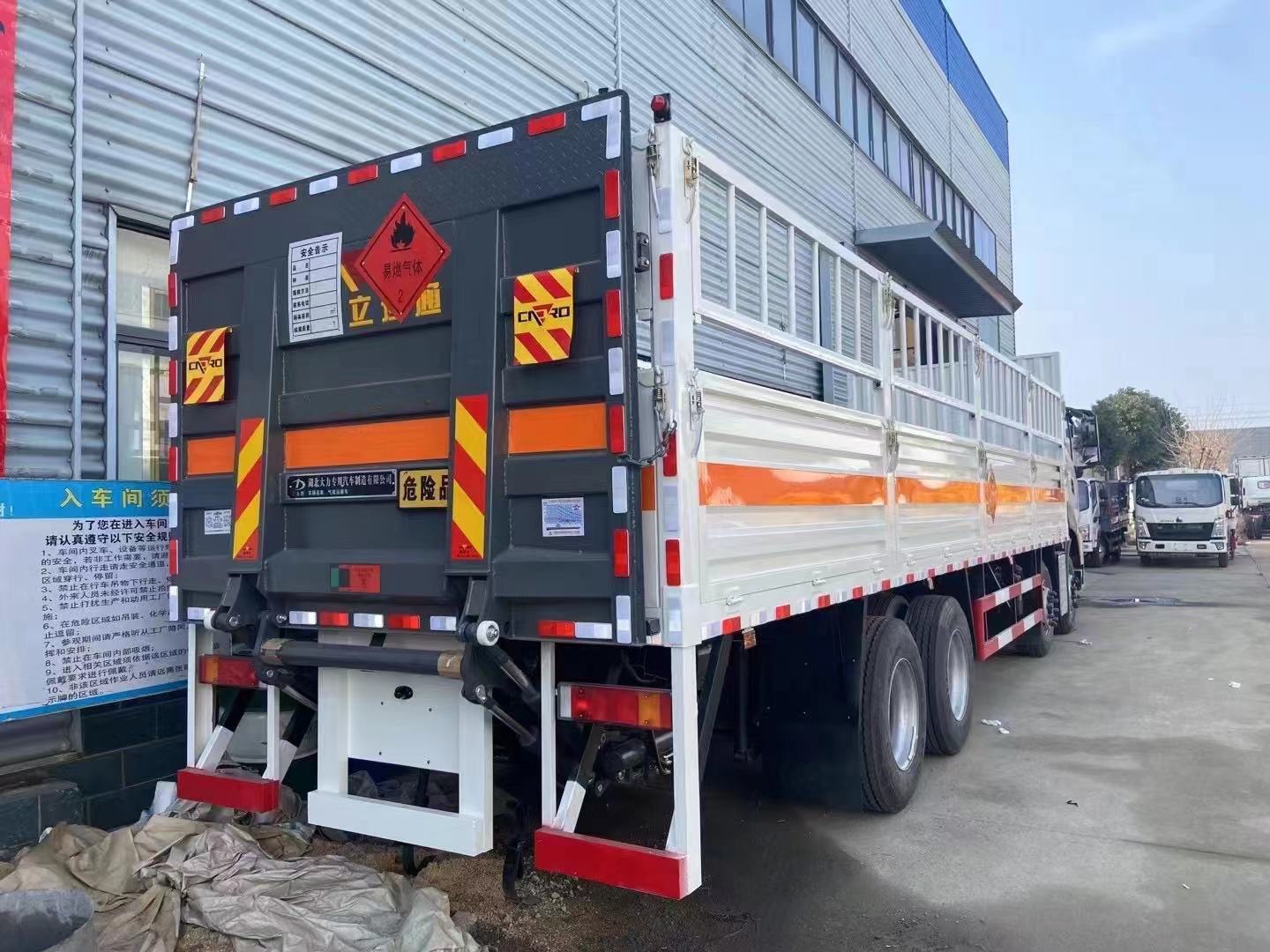 東風天龍前四后八氣瓶車,9.6米貨廂,DDI發(fā)動機,350馬力,2噸液壓尾板。