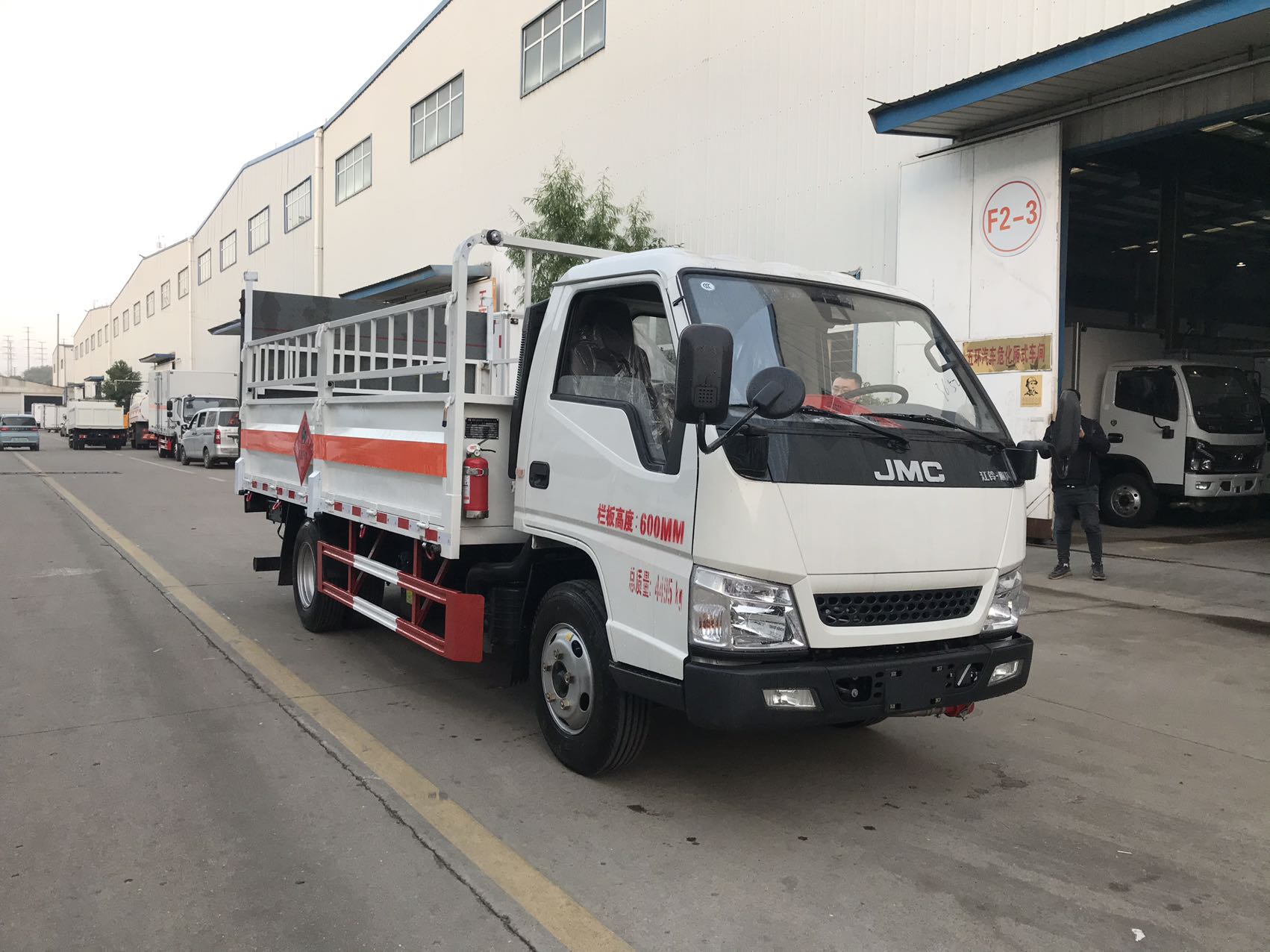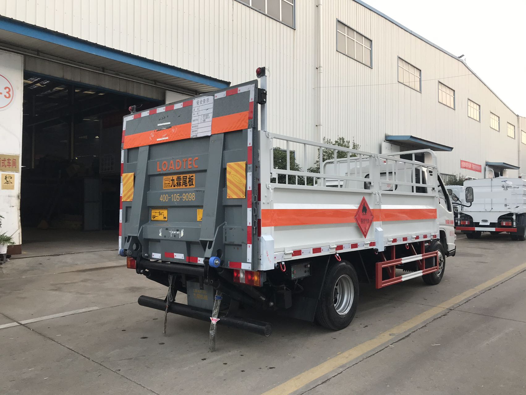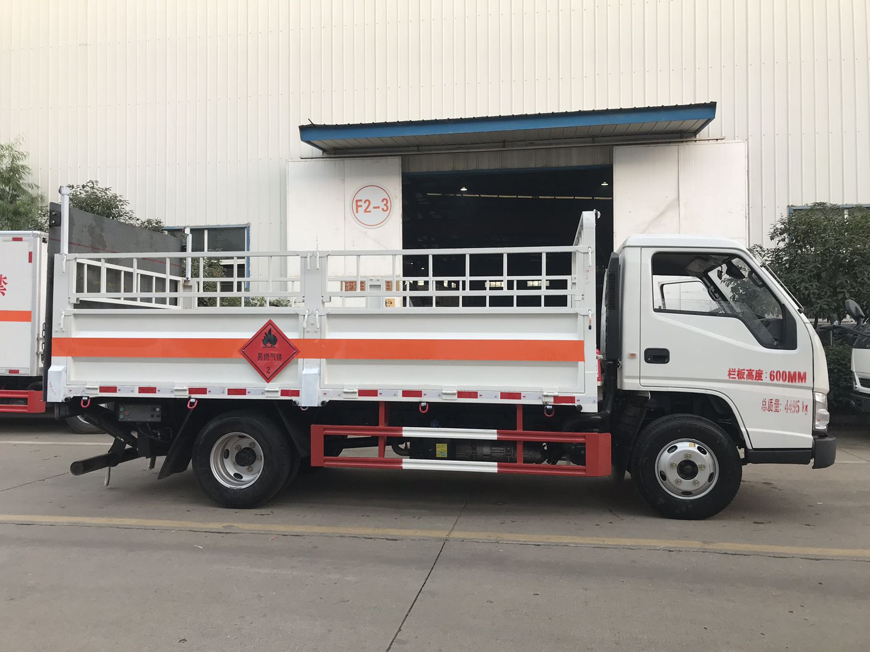嚴格按照公告尺寸制作,底板采用高強鋼,底板上鋪靜電膠皮,帶高欄,配備滅火器,三角頂燈,靜電拖帶等,嚴格按照國家危險品法規(guī)進行“易燃氣體”標識粘貼等。