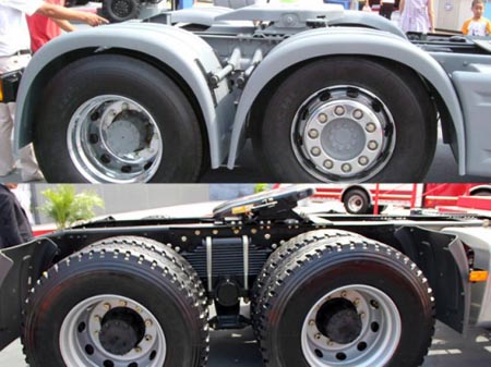 當(dāng)年的J6HC采用了6×2的驅(qū)動形式,第二橋為可提升的結(jié)構(gòu),驅(qū)動橋則采用空氣懸掛。目前的J6H采用6×4的驅(qū)動形式。當(dāng)然,J6H應(yīng)該是一個系列,會有各種配置的產(chǎn)品。不過取消了驅(qū)動橋的輪罩有些遺憾。