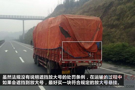 ⑥ 保證放大號完整清晰,裝載或者篷布可能會遮蓋到放大號的還需要懸掛合格的放大號。