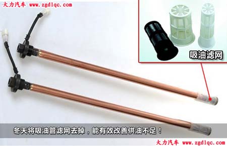 油箱探管底部通常出廠時(shí)安裝有附加濾網(wǎng),建議車輛入冬應(yīng)提前清洗油箱,由于柴油低溫稠化,很難通過濾網(wǎng),應(yīng)將其拆除。目前主流卡車的油箱探管與燃油表傳感器設(shè)計(jì)成一體,拆裝時(shí)注意拿取方向,可以從油箱口處觀察。